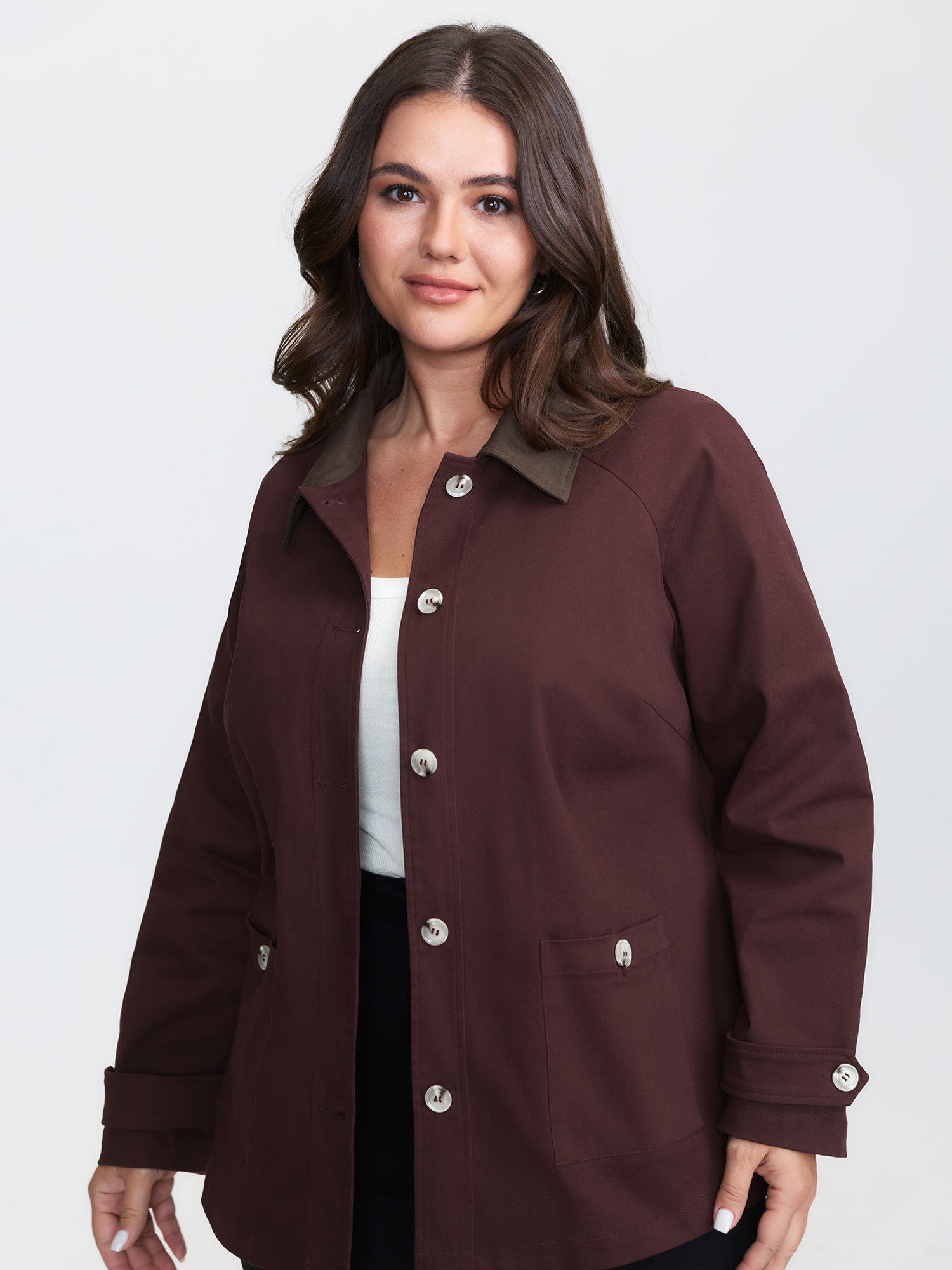 Shop Color Contrast Relaxed-Fit Pockets Jacket now and redefine your style with confidence at BloomChic. Tailored for mid and plus-size women. This trendy Outerwear Women. sizes 10-30.
