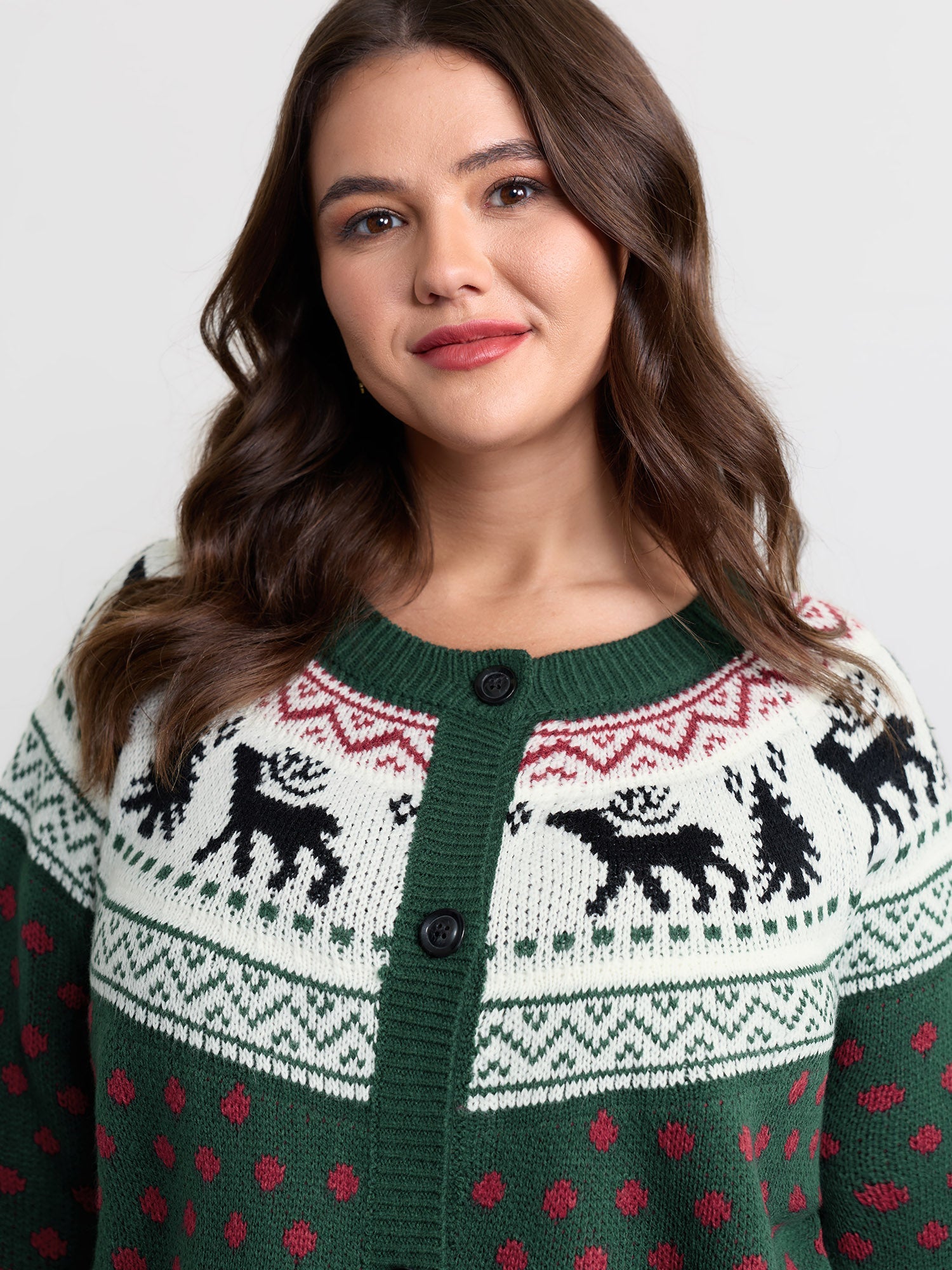 Shop Fair-Isle Holiday Buttons Knit Cardigan now and redefine your style with confidence at BloomChic. Tailored for mid and plus-size women. This trendy Sweaters Cardigans Women. sizes 10-30. Color:DarkGreen;Neckline:Round Neck;Sleeve Type:Raglan sleeve;Pattern Type:Christmas;Prints:Polka dots;Details:Contrast;Pocket:No-pocket;Belt:No-belt;Closure Type:Button