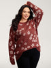 Floral Pattern Round Neck Ribbed Pullover