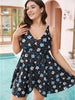 Shop Floral & Polka Dot V Neck Split Front Swim Dress now and redefine your style with confidence at BloomChic. Tailored for mid and plus-size women. This trendy Swimwear Women. sizes 10-30. Season:Summer;Color:BlackFlower;Style:Vacation;Bra Type:Wireless;Coverage:Full;Neckline:V-neck;Sleeve Type:Sleeveless;Pattern Type:Ditsy Floral;Details:Asymmetrical. Printed. Tummy control. A-line. Adjustable Straps;Pocket:No-pocket;Belt:No-belt;Chest pad:Removable Padding;Lining:Lining