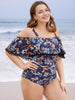 Shop Floral Pompom Trim Cold Shoulder One Piece Swimsuit now and redefine your style with confidence at BloomChic. Tailored for mid and plus-size women. This trendy Swimwear Women. sizes 10-30. Season:Summer;Color:Indigo;Style:Vacation;Bra Type:Wireless;Coverage:Full;Sleeve Type:Ruffle Sleeve;Pattern Type:Floral;Details:Printed. Tummy control. Adjustable Straps. Ruched. Ruffles;Pocket:No-pocket;Belt:No-belt;Chest pad:Removable Padding;Lining:Lining