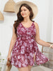 Floral Print Adjustable Straps Flutter Split Hem Swim Dress