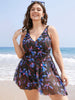 Shop Floral Print Adjustable Straps Gathered Asymmetrical Hem Swim Dress now and redefine your style with confidence at BloomChic. Tailored for mid and plus-size women. This trendy Swimwear Women. sizes 10-30. Color:BlackFlower;Bra Type:Wireless;Coverage:Full;Neckline:V-neck;Sleeve Type:Sleeveless;Pattern Type:Floral;Details:Printed. Tummy control. A-line. Adjustable Straps. Asymmetrical. Pleated. See through;Pocket:No-pocket;Belt:No-belt;Chest pad:Removable Padding;Lining:Lining