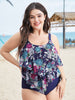 Shop Floral Print Asymmetrical Tiered Hem Ruffles One Piece Swimsuit now and redefine your style with confidence at BloomChic. Tailored for mid and plus-size women. This trendy Swimwear Women. sizes 10-30. Season:Summer;Color:DarkBlue;Style:Vacation;Bra Type:Full Coverage;Neckline:Round Neck;Sleeve Type:Sleeveless;Pattern Type:Floral;Details:Ruffles. Tiered. Patchwork. Tummy control. Adjustable Straps;Pocket:No-pocket;Belt:No-belt;Chest pad:Removable Padding;Lining:Lining