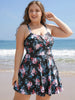 Shop Floral Print Crossover A Line Ruffle Hem Swim Dress now and redefine your style with confidence at BloomChic. Tailored for mid and plus-size women. This trendy Swimwear Women. sizes 10-30. Season:Spring;Color:BlackFlower;Bra Type:Wireless;Coverage:Full;Sleeve Type:Sleeveless;Pattern Type:Floral;Details:A-line. Adjustable Straps. Tummy control. Printed. Gathered;Pocket:No-pocket;Belt:No-belt;Chest pad:Removable Padding;Lining:Lining