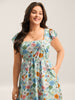 Floral Print Flutter Sleeve Pockets Midi Dress