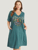 Shop Floral Print Roll Sleeve Pocket V Neck Dress now and redefine your style with confidence at BloomChic. Tailored for mid and plus-size women. This trendy Dress. sizes 10-30. You can never go wrong with BloomChic Dresses. Color:Emerald;Style:Casual;Neckline:V-neck;Sleeve Type:Regular Sleeve;Pattern Type:Floral;Pocket:Side seam pocket;Belt:No-belt