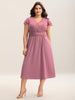 Shop Flutter Sleeve Lace Stretchy Waist Midi Dress now and redefine your style with confidence at BloomChic. Tailored for mid and plus-size women. This trendy Dress. sizes 10-30. You can never go wrong with BloomChic Dresses. Color:DustyPink;Style:Elegant;Neckline:Overlap Collar;Sleeve Type:Ruffle Sleeve;Prints:Non;Details:Shirred. Gathered. Woven ribbon&lace trim;Pocket:Side seam pocket;Belt:No-belt;Closure Type:Non