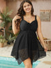Shop Geometric Mesh Patchwork Flutter Drawstring Swim Dress now and redefine your style with confidence at BloomChic. Tailored for mid and plus-size women. This trendy Swimwear Women. sizes 10-30. Color:Black;Style:Vacation;Neckline:Square Neck;Sleeve Type:Sleeveless;Pattern Type:Plain;Details:Adjustable Straps. Tummy control. A-line. Plain;Pocket:No-pocket;Snap Fastener:No-snap fastener;Belt:No-belt;Chest pad:Removable Padding;Lining:Lining