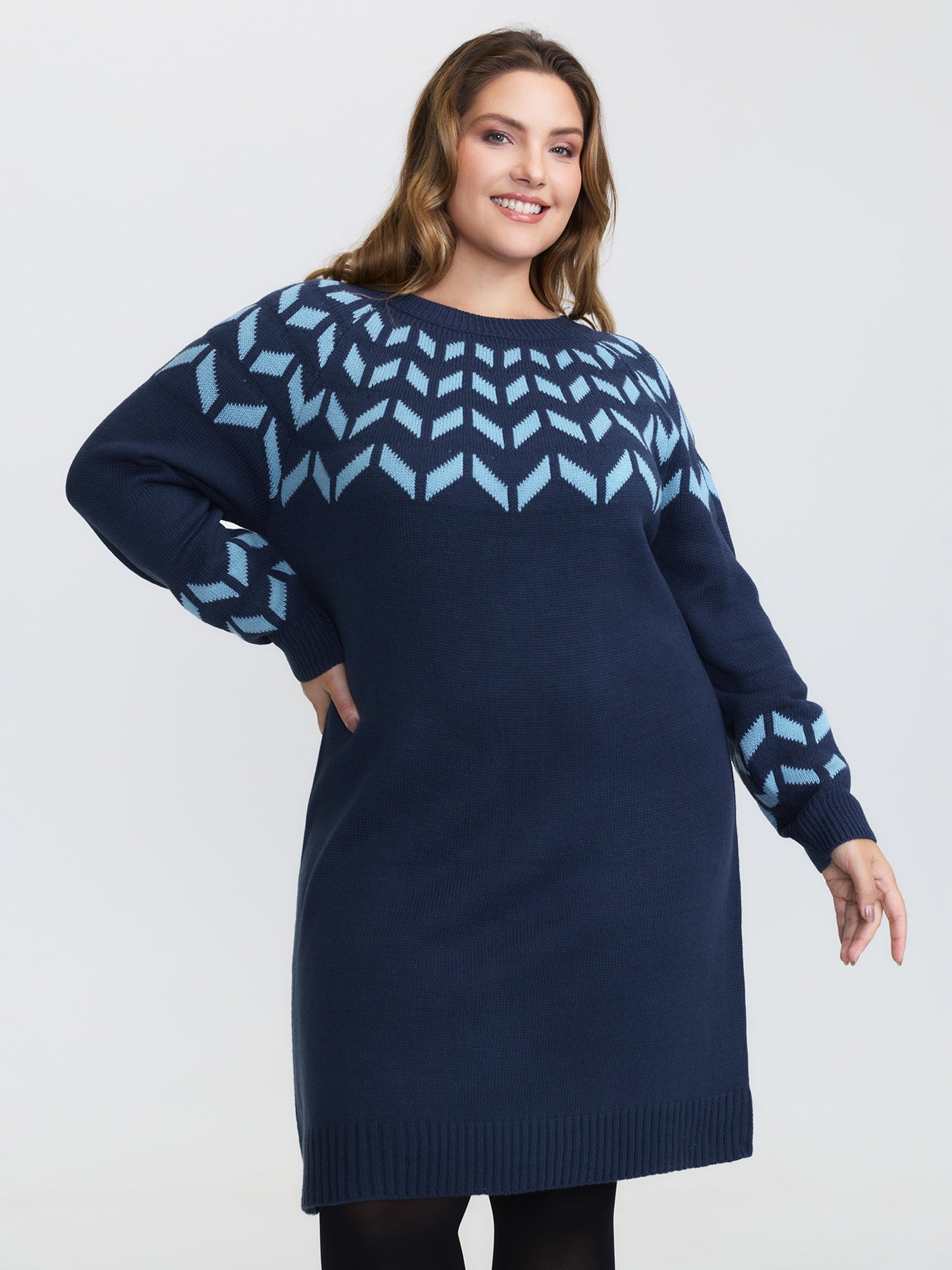 Shop Geometric Pattern Raglan Sleeve Midi Sweater Dress at BloomChic. Plus Size Clothing & Plus Size Sweater Dresses. BloomChic is a digital-first fashion and lifestyle destination for modern women sizes 10-30.