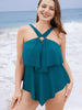Shop Halter Neck Buckle Ruffle Tiered One Piece Swimsuit now and redefine your style with confidence at BloomChic. Tailored for mid and plus-size women. This trendy Swimwear Women. sizes 10-30. Season:Summer;Color:Turquoise;Bra Type:Wireless;Coverage:Full;Neckline:Halter neck;Sleeve Type:Sleeveless;Pattern Type:Plain;Details:Tiered. Plain. Tummy control. Adjustable Straps;Pocket:No-pocket;Belt:No-belt;Chest pad:Removable Padding;Lining:Lining