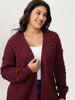 Shop Heart Textured Lantern Sleeve Knit Cardigan now and redefine your style with confidence at BloomChic. Tailored for mid and plus-size women. This trendy Sweaters Cardigans Women. sizes 10-30. Color:Burgundy;Style:Leisure;Neckline:Kimono collar;Sleeve Type:Drop shoulder sleeve;Prints:Heart-shaped;Details:Texture;Pocket:No-pocket;Belt:No-belt;Closure Type:Open front without closure