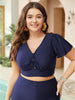 Shop Plain Cut Out Knotted Front Ruffle Sleeve Bikini Top now and redefine your style with confidence at BloomChic. Tailored for mid and plus-size women. This trendy Swimwear Women. sizes 10-30. Season:Summer;Color:Indigo;Style:Vacation;Bra Type:Wireless;Coverage:Full;Pattern Type:Plain;Details:Knotted. Plain. Gathered;Pocket:No-pocket;Belt:No-belt;Chest pad:Removable Padding