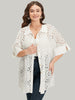 Plain Shirt Collar Broderie Anglaise Open Front Kimono