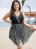 Shop Ruffle Trim Hanky Hem Floral Contrast Swim Dress now and redefine your style with confidence at BloomChic. Tailored for mid and plus-size women. This trendy Swimwear Women. sizes 10-30. Color:BlackFlower;Style:Vacation;Bra Type:Wireless;Coverage:Full;Neckline:V-neck;Sleeve Type:Sleeveless;Pattern Type:Floral;Details:Ruffles. Asymmetrical. Patchwork. Printed. Tummy control. A-line. Adjustable Straps;Pocket:No-pocket;Belt:No-belt;Chest pad:Removable Padding;Lining:Lining