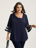 Decrease quantity for Sheer Sleeve Patchwork Asymmetrical Neckline Blouse