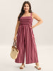Shirred Stripes Adjustable Pockets Jumpsuit
