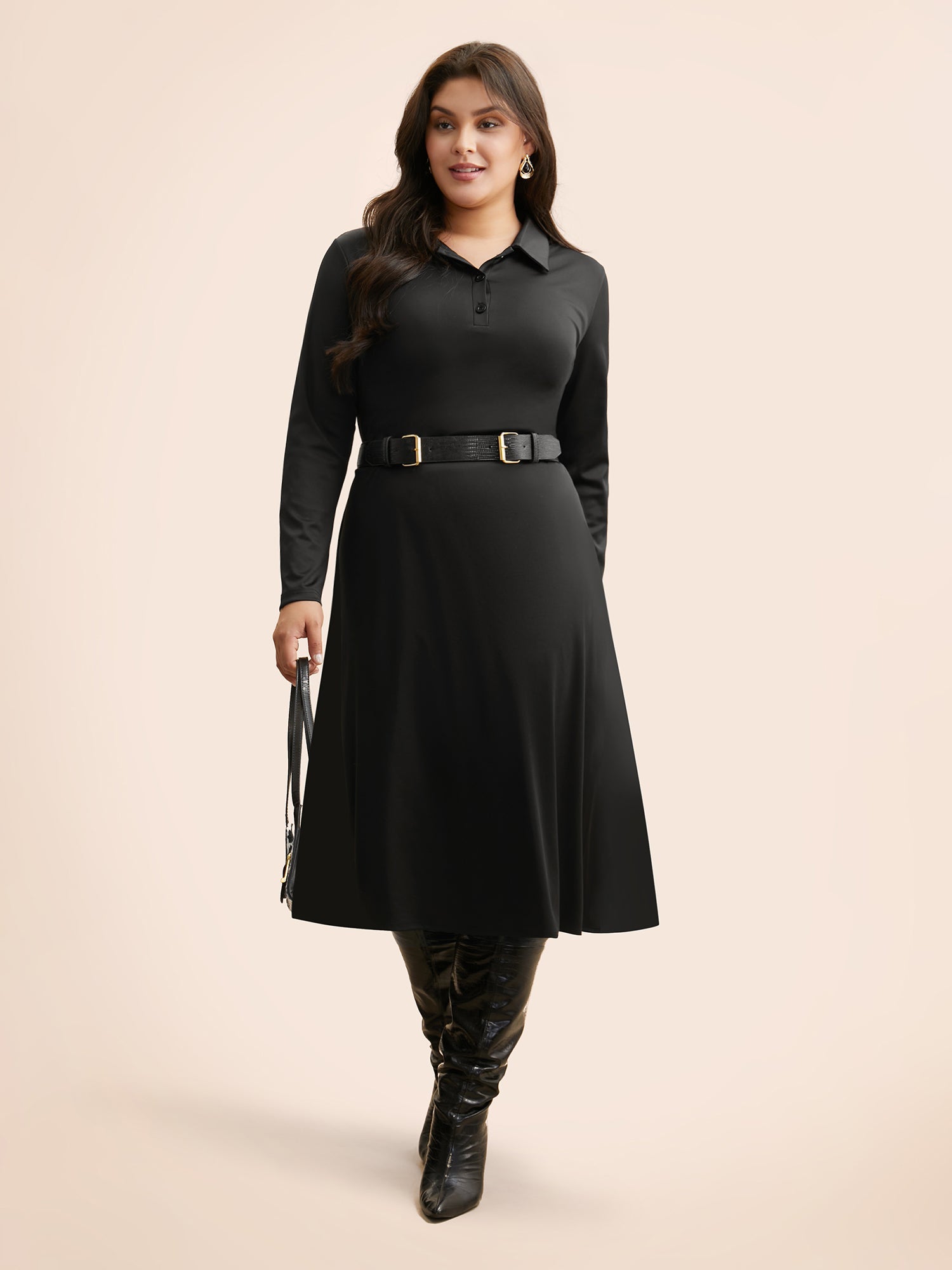 Shop Shirt Collar Button Up Midi Dress now and redefine your style with confidence at BloomChic. Tailored for mid and plus-size women. This trendy Dress. sizes 10-30. You can never go wrong with BloomChic Dresses. Season:Winter;Color:Black;Style:Elegant;Neckline:Shirt collar;Sleeve Type:Regular Sleeve;Prints:Non;Details:Button;Pocket:No-pocket;Belt:No-belt;Closure Type:Button