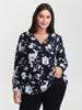 Silhouette Flower Pleated Shoulder Blouse
