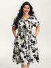 Silhouette Flower Puffy Sleeve Midi Dress