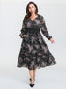 Shop Soft Floral Print Lace Trim Midi Dress now and redefine your style with confidence at BloomChic. Tailored for mid and plus-size women. This trendy Dress. sizes 10-30. You can never go wrong with BloomChic Dresses. Color:Black;Style:Romantic;Neckline:V-neck;Sleeve Type:Lantern Sleeve;Prints:Floral;Pocket:Side seam pocket;Belt:No-belt;Closure Type:Button