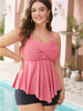 Solid A Line Crossover Asymmetrical Hem Tankini Top