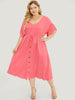 Shop Solid Flutter Sleeve Button Detail Pocket Drawstring Dress now and redefine your style with confidence at BloomChic. Tailored for mid and plus-size women. This trendy Dress. sizes 10-30. You can never go wrong with BloomChic Dresses. Season:Summer;Color:Watermelon;Style:Vacation;Neckline:V-neck;Sleeve Type:Bell Sleeve;Pattern Type:Plain;Details:Ruffles. Button. Drawstring;Pocket:It is perfectly sized to carry a phone.;Belt:Belt