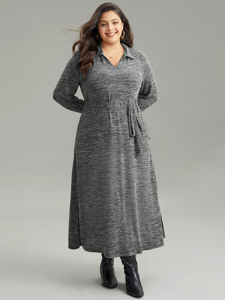Shop Solid Pocket Elastic Waist Ties Split Hem Dress now and redefine your style with confidence at BloomChic. Tailored for mid and plus-size women. This trendy Dress. sizes 10-30. You can never go wrong with BloomChic Dresses. Color:DimGray.Purple;Style:Casual;Neckline:Lapel Collar;Sleeve Type:Regular Sleeve;Pattern Type:Plain;Details:Slit. Pocket. Plain;Pocket:It is perfectly sized to carry a phone.;Belt:No-belt
