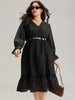 Shop Solid Pocket Mesh Frill Trim Dress now and redefine your style with confidence at BloomChic. Tailored for mid and plus-size women. This trendy Dress. sizes 10-30. You can never go wrong with BloomChic Dresses. Season:Winter;Color:Black;Style:Elegant;Neckline:V-neck;Sleeve Type:Ruffle Sleeve;Pattern Type:Plain;Details:Pocket. Plain. See through. Frill Trim;Pocket:It is perfectly sized to carry a phone.;Belt:No-belt