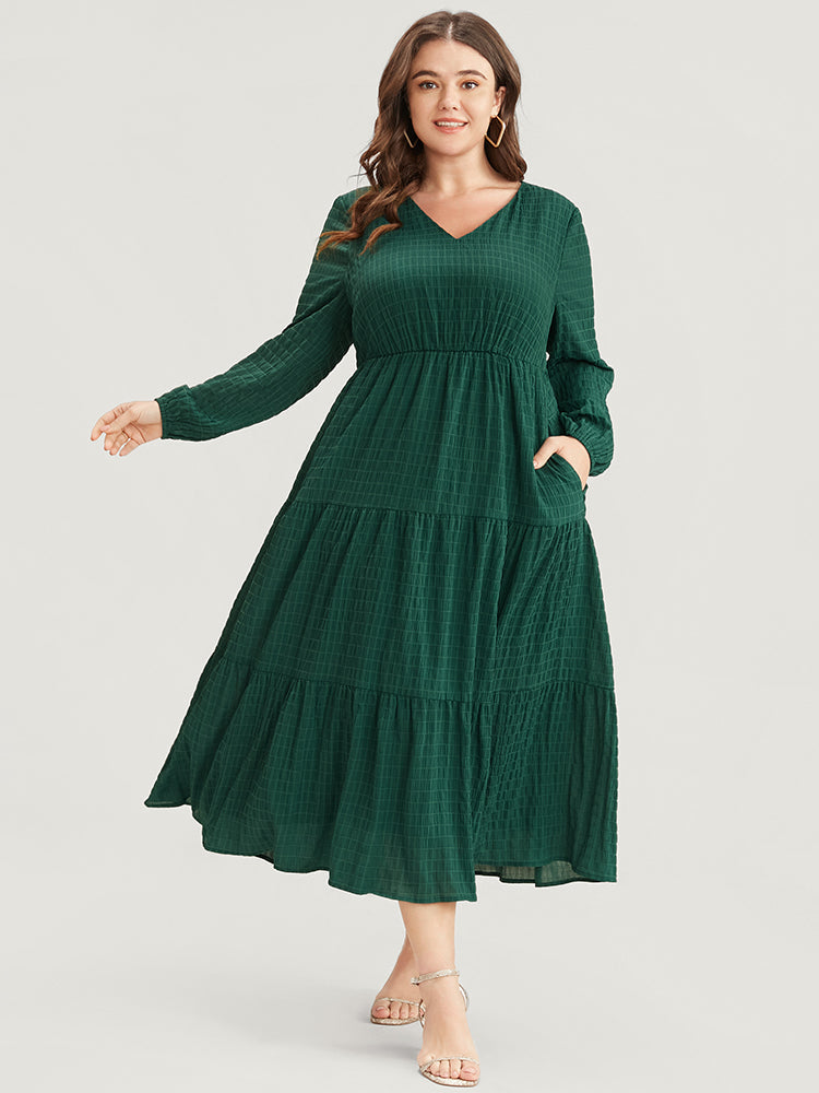 Shop Solid V Neck Lantern Sleeve Pocket Gingham Flutter Dress now and redefine your style with confidence at BloomChic. Tailored for mid and plus-size women. This trendy Dress. sizes 10-30. You can never go wrong with BloomChic Dresses. Season:Winter;Color:DarkGreen;Neckline:V-neck;Sleeve Type:Lantern Sleeve;Details:Pocket;Pocket:It is perfectly sized to carry a phone.;Belt:No-belt