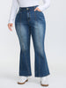 Shop Stretchy Seamed Mid-Rise Flared Jeans now and redefine your style with confidence at BloomChic. Tailored for mid and plus-size women. This trendy Denim Women. sizes 10-30. Color:Midblue;Style:Timeless;Prints:Non;Details:Topstitching;Pocket:Slanted pocket;Belt:No-belt;Closure Type:Open front with closure;Wash:Dark Wash