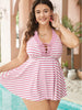 Shop Striped Contrast Lace Up Crossover Tankini Top now and redefine your style with confidence at BloomChic. Tailored for mid and plus-size women. This trendy Swimwear Women. sizes 10-30. Season:Summer;Color:Pink;Style:Vacation;Bra Type:Wireless;Coverage:Full;Pattern Type:Striped;Details:Patchwork. Printed. Cross straps. Gathered. Tummy control. A-line. Adjustable Straps;Pocket:No-pocket;Belt:No-belt;Chest pad:Removable Padding