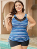 Striped Geometric Mesh Insert Ruched Drawstring Tankini Top