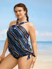Striped Keyhole Tie Knot Swim Top