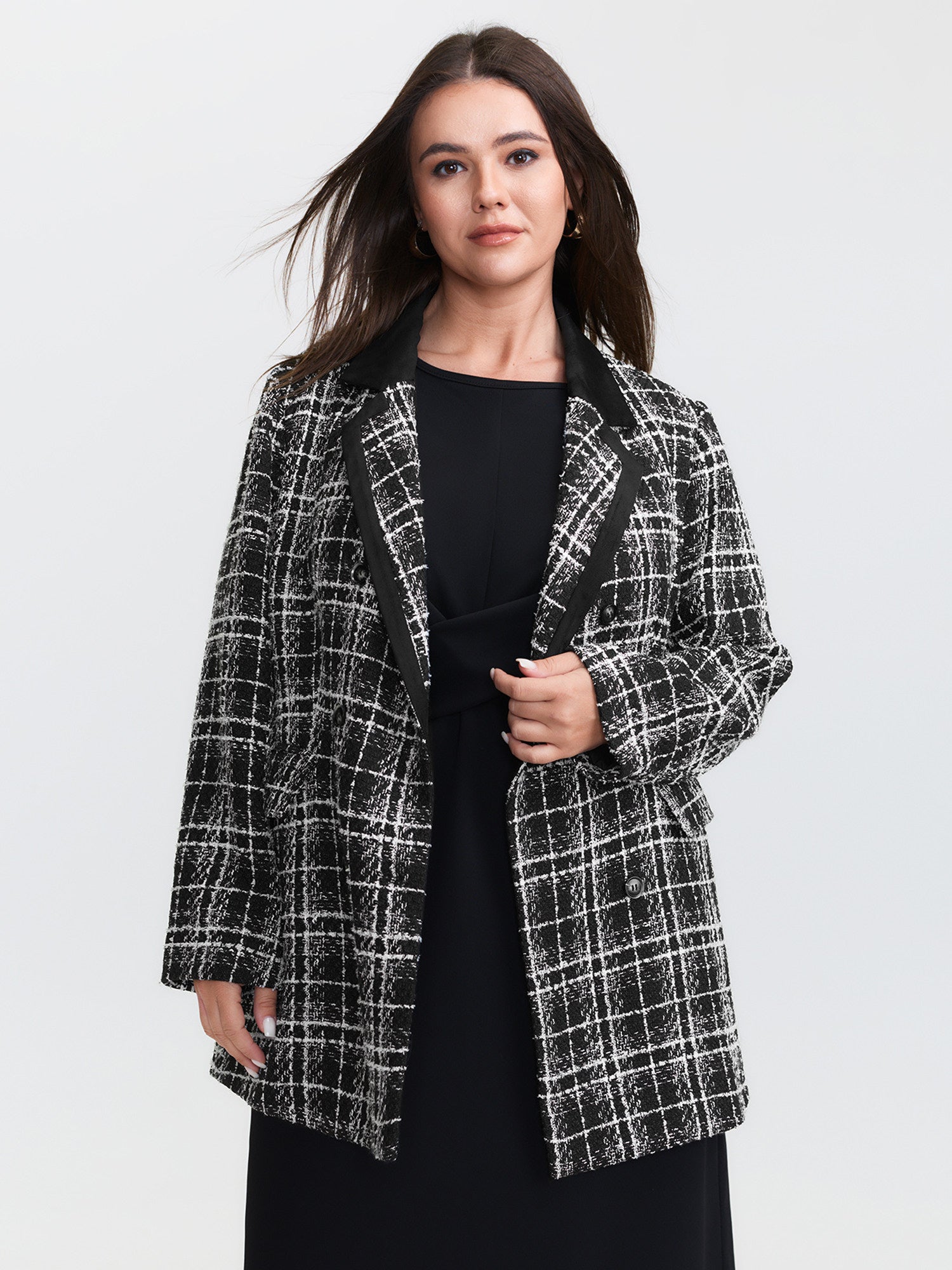 Shop Tweed Print Lined Double Breasted Blazer now and redefine your style with confidence at BloomChic. Tailored for mid and plus-size women. This trendy Outerwear Women. sizes 10-30. Color:Black;Style:Office;Neckline:Suit Collar;Sleeve Type:Regular Sleeve;Prints:Plaid;Pocket:Open pocket with flap;Belt:No-belt;Closure Type:Button;Lining:Lining